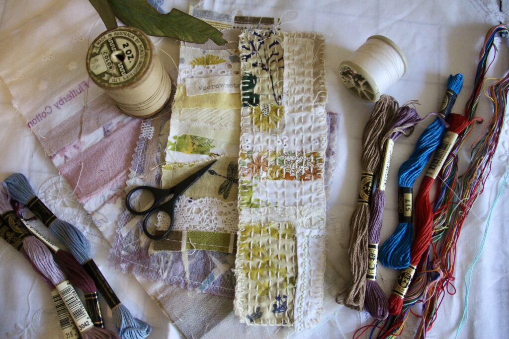 Create zero-waste wearable art by piecing together scrap fabrics, lace, buttons and words! You’ll start by arranging and layering tiny fabric scraps on a background, then use slow stitch techniques to bring a beautiful and unique brooch to life. You can even use it as a pinned patch! Slow stitching is a great way to be present, relax and simply enjoy the process of creating.